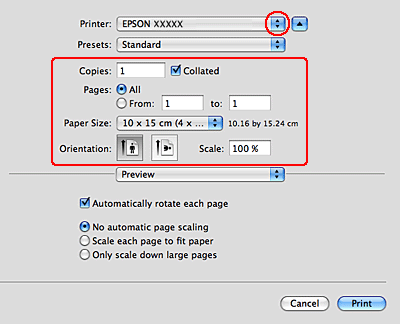 Vælg den printer, du bruger, som indstilling for Printer. Vælg derefter indstillinger for Copies & Pages.