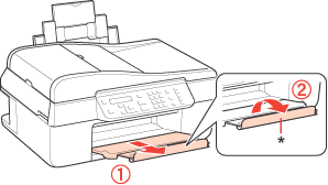 Åbn papirstøtten, og træk så forlængeren ud.