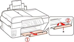 Åbn papirstøtten, og træk så forlængeren ud.