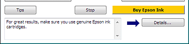 TipsForskellige tip til at få det optimale ud af din Epson-printerdriver vises i tekstfeltet i statusmålervinduet. Klik på knappen Details (Detaljer) for at få yderligere oplysninger om det tip, der vises i vinduet.