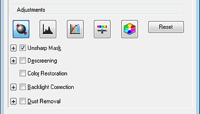 Denne indstilling er tilgængelig under følgende betingelser: - Når du vælger Photograph (Foto) som indstilling for Document Type (Dokumenttype), og Image Type (Billedtype) er indstillet til Color (Farve). - Når du vælger Photograph (Foto) som indstilling for Document Type (Dokumenttype), og Image Type (Billedtype) er indstillet til Grayscale (Gråtone).
