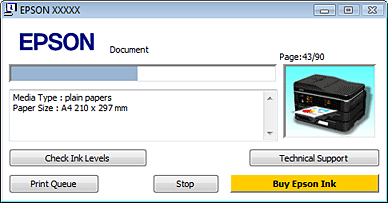 Du kan få vist Windows Spooler (Windows spooler) ved at klikke på Print Queue (Udskriftskø). Mac OS XSådan bruges EPSON Status MonitorHvis EPSON Status Monitor registrerer et printerproblem, vises der en fejlmeddelelse.