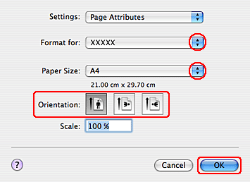 Vælg de ønskede indstillinger for Paper Size (Papirstørrelse) og Orientation (Retning). Du kan også definere en brugerdefineret papirstørrelse. Yderligere oplysninger finder du i online Hjælp.