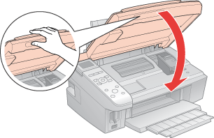 Printeren er placeret på en jævn, stabil overflade, der er større end printerens bundflade i alle retninger. Printeren vil ikke fungere korrekt, hvis den står skævt.