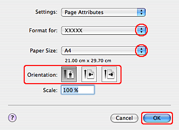 Vælg de ønskede indstillinger for Paper Size (Papirstørrelse) og Orientation (Retning).