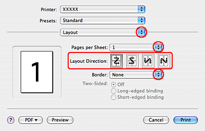 Klik på fanen Page Layout (Sidelayout), vælg Multi-page (Flere sider), og vælg derefter Pages Per Sheet (Sider pr. ark).