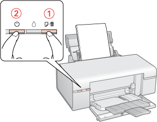 Hold papirknappen  nede, og tryk på strømknappen  for at tænde printeren.