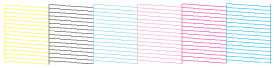 Hvis der mangler noget i de udskrevne linjer som vist herunder, kan det antyde en tilstoppet blækdyse eller et fejljusteret skrivehoved.