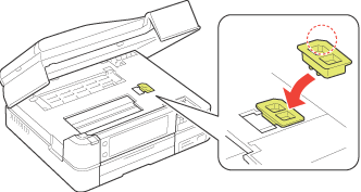 Hvis skrivehovedet ikke står i sin udgangsposition til højre, skal du tænde for printeren og vente, til skrivehovedet låses fast i yderste højre position. Sluk derefter for printeren.