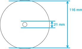 Indstil altid den indvendige og den udvendige diameter inden for de herover viste områder, selvom EPSON Print CD giver dig mulighed for at indstille den indvendige diameter ned til 18 mm og den udvendige diameter op til 120 mm. Udskrivning på området uden for udskriftsområdet kan beskadige cd/dvd-drevet.