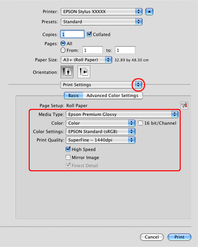 Vælg Print Settings (Udskriftsindstillinger) i pop-up-menuen.