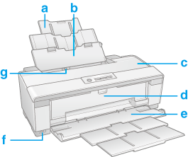 Patrondæksel: Fastholder blækpatronerne Skal kun åbnes ved installation eller udskiftning af blækpatroner.