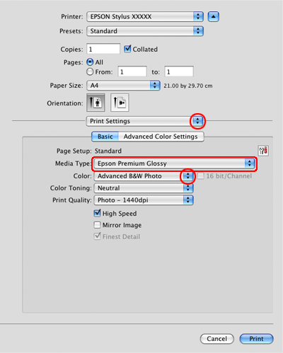 Vælg Print Settings (Udskriftsindstillinger) i pop-up-menuen.
