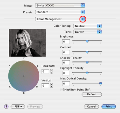 Afhængigt af dit program er der muligvis nogle emner i denne dialogboks, du ikke kan vælge. Hvis der er det, skal du klikke på Page Setup (Sidelayout) i menuen File (Filer) i dit program og vælge de ønskede indstillinger.