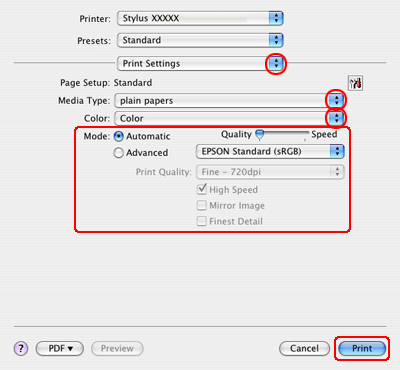 Printerindstillinger i Mac OS X 10.3 eller 10.4