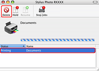Klik på knappen Delete (Slet) for at annullere udskriftsjobbet.