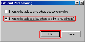 Vælg I want to be able to allow others to print to my printer(s) (Andre brugere skal kunne udskrive til min(e) printer(e)), og klik på OK.