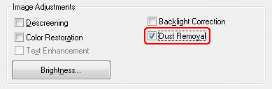 Fjernelse af støvMed funktionen Dust Removal (Fjernelse af støv) i Epson Scan kan du let "rense" dine originaler for støv, når du scanner dem.