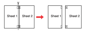 Skær de tapede ark i to dele langs en lodret linje gennem justeringsmærkerne (denne gang en linje til venstre for krydsene):