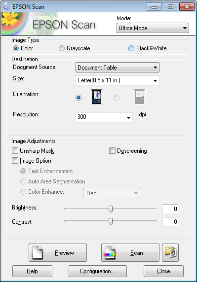 Vælg Office Mode (Office-tilstand) fra listen Mode (Tilstand).