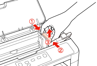 Hvis det er svært at fjerne blækpatronen. skal du bruge mere kraft, indtil den løsnes.