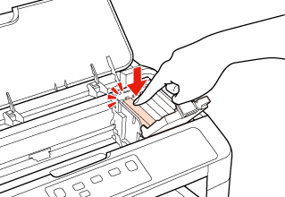 Indsæt den nye blækpatron i blækpatronholderen med bunden nedad. Tryk derefter blækpatronen ned, indtil den klikker på plads.