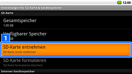 ] und wählen Sie dann SD-Karte&Gerätespeicher.
