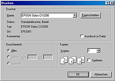 Damit ist der einfache Druckvorgang beendet. Informationen über weitere Druckeinstellungen finden Sie unter EinleitungVerschiedene Druckoptionen.