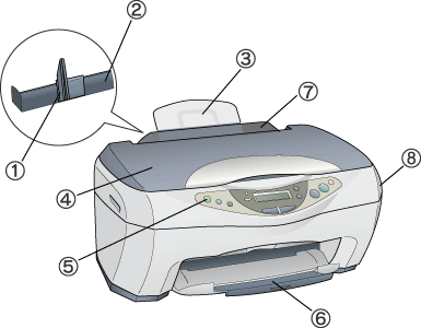 3. Papierstütze: Stützt das in den Einzelblatteinzug eingelegte Papier.