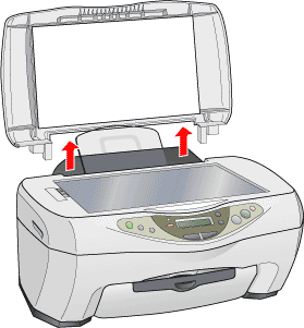 Zum Abnehmen der Vorlagenabdeckung öffnen Sie sie und ziehen Sie sie nach oben.