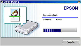 EPSON TWAIN legt die Einstellung der Bildposition und die Einstellung der Belichtung automatisch fest und beginnt mit dem Scanvorgang. Wenn Sie mehrere Fotos scannen, wird die Anzahl der gescannten Bilder angezeigt.