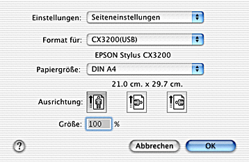 Wählen Sie in Ihrer Anwendung im Menü Ablage die Option Papierformat. Das Dialogfenster Papierformat wird aufgerufen.