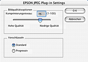 Wählen Sie eine Codiermethode für Verwendung von gescannten Bildern im Internet (Hompage). Werden die Bilder nicht im Internet verwendet, wählen Sie die Methode Standard. Nähere Informationen zu dieser Einstellung finden Sie in der Online-Hilfe.