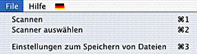 Es ist auch möglich, die Funktionen von EPSON Scan to File aus dem Menü Datei zu steuern.