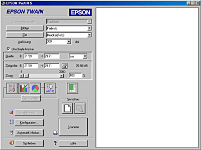 Scannt das Bild oder den aktiven Bereich im Fenster Vorschau. |