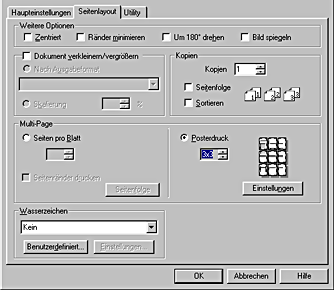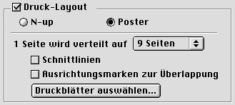 Markieren Sie das Kontrollkästchen Druck-Layout im Dialogfenster Seitenlayout und wählen Sie Poster.