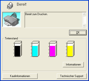 In einer grafischen Anzeige wird daraufhin die verbleibende Tintenmenge angezeigt.