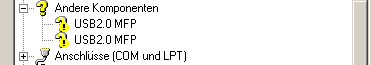 Wenn die Option USB MFP oder EPSON Stylus CX3600 unter Sonstige Geräte angezeigt wird, ist die Druckersoftware nicht richtig installiert. Fahren Sie mit Schritt 5 fort.