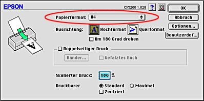 Wählen Sie A4 als Einstellung für Papierformat. Klicken Sie dann auf OK, um das Dialogfenster zu schließen.