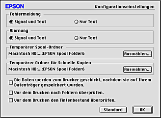 Wählen Sie die Art der Benachrichtigung des EPSON-StatusMonitors im Fall eines Fehlers. |