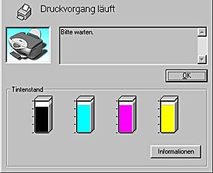 Sie können den Füllstand der Tintenpatronen entweder mit dem EPSON-Statusmonitor3 oder dem Fortschrittsbalken prüfen. Näheres finden Sie jeweils im entsprechenden Abschnitt weiter unten.