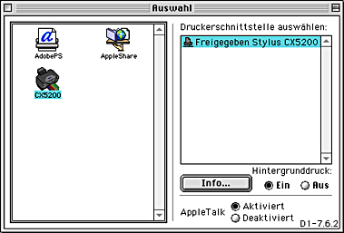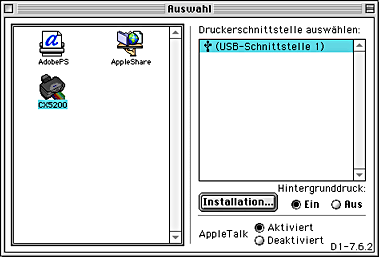 Um dieses Gerät gemeinsam mit anderen Computern in einem AppleTalk-Netzwerk zu nutzen, beachten Sie die nachfolgend aufgeführten Schritte zur Konfiguration des Computers, an dem das Gerät angeschlossen ist.