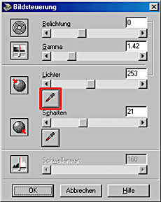 Klicken Sie im Dialogfeld Bildsteuerung unter Lichter auf die Schaltfläche Pipette.