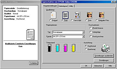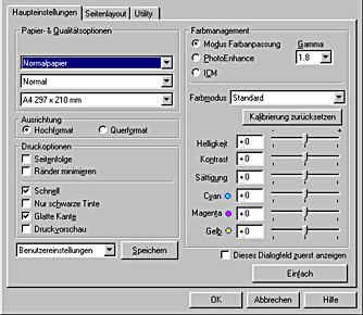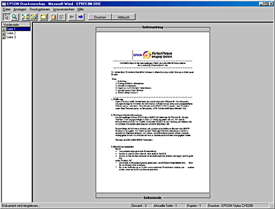 Wenn Sie einen Druckauftrag an den Drucker abschicken, wird das Fenster Druckvorschau Ihres EPSON-Druckers geöffnet, und Sie können vor dem Druck noch Änderungen vornehmen.