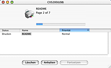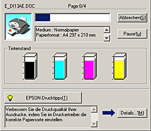 Mit Hilfe des Fortschrittsbalkens oder des EPSON Spool Managers ist es möglich, den laufenden Druckauftrag abzubrechen. Näheres finden Sie jeweils im entsprechenden Abschnitt weiter unten.
