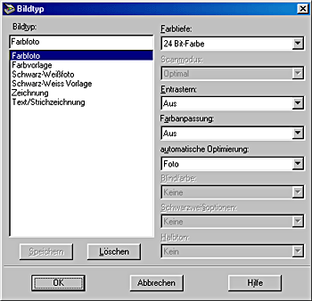 Die Schaltfläche Bildtyp öffnet das Dialogfeld Bildtyp, in welchem Sie die in diesem Abschnitt beschriebenen Bildtypeinstellungen vornehmen können.