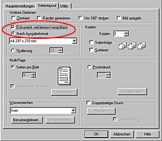 Unter Windows: Markieren Sie auf der Registerkarte Seitenlayout das Kontrollkästchen Dokument verkleinern/vergrößern und dann die Option Nach Ausgabeformat.