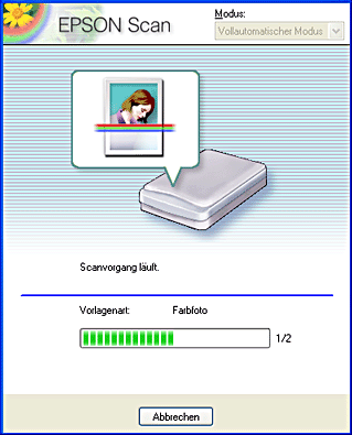 Klicken Sie auf Scannen. EPSON Scan startet den Scanvorgang.