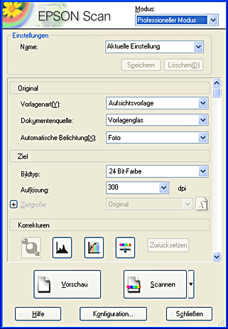 Klicken Sie auf Scannen. EPSON Scan startet den Scanvorgang.