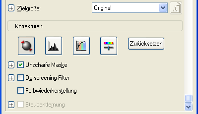 Geben Sie die Ausgabegröße des gescannten Bildes als Zielgröße an und nehmen Sie erforderlichenfalls Einstellungen mit den Tools zur Einstellung der Bildqualität vor.